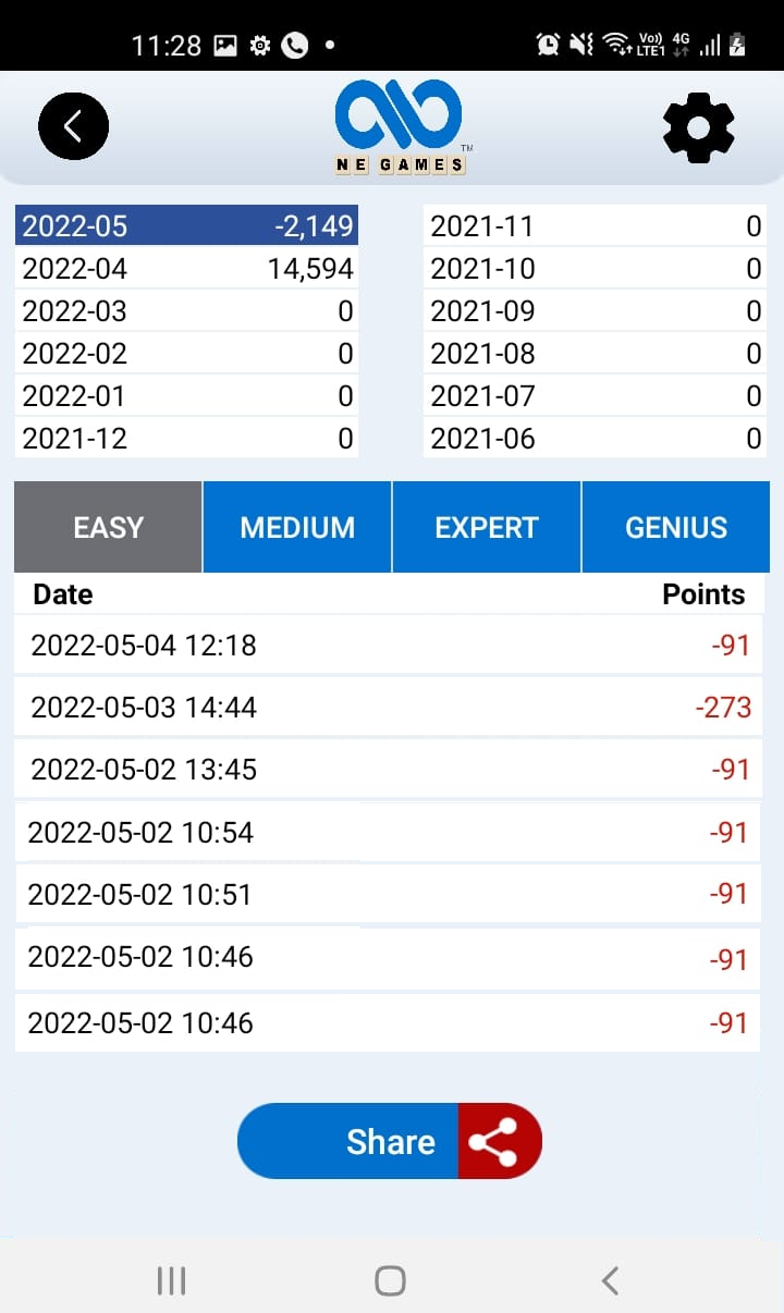 As your points are stored for you monthly, you will be able to see in which month you scored the most points. This will act as a MONTHLY RECORD for you to aim at each month.